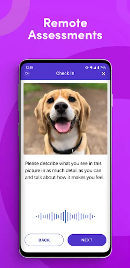 The application enables participants to complete surveys and assessments about their health and treatment quickly and easily on their phone, allowing remote evaluation of progress between in-person visits.