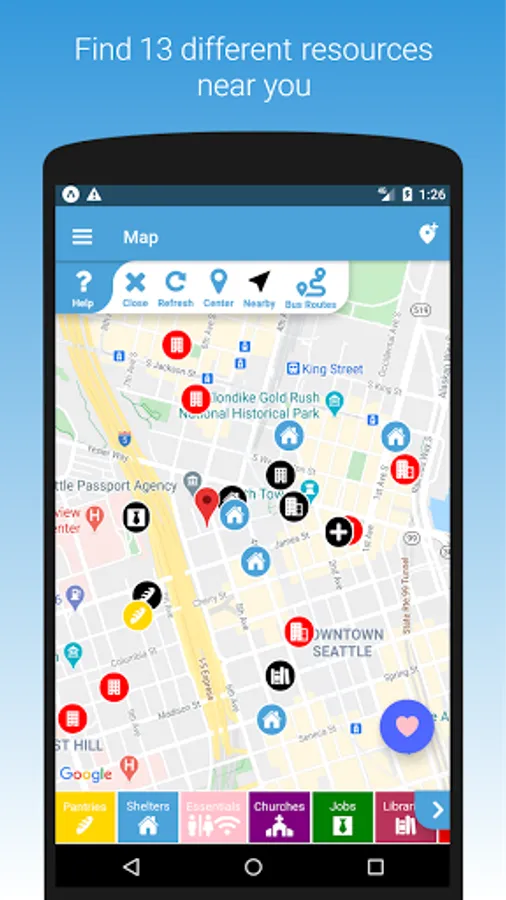 Comeback is an app designed to help people navigate through times of struggle and assist those helping other people facing hard times. This app functions in ALL 50 US states and within these states 90% of cities, towns, metros, and more are covered.