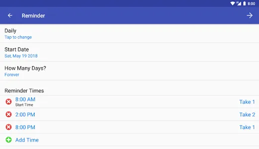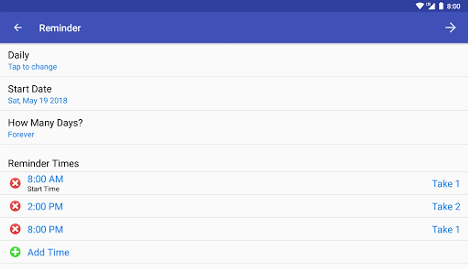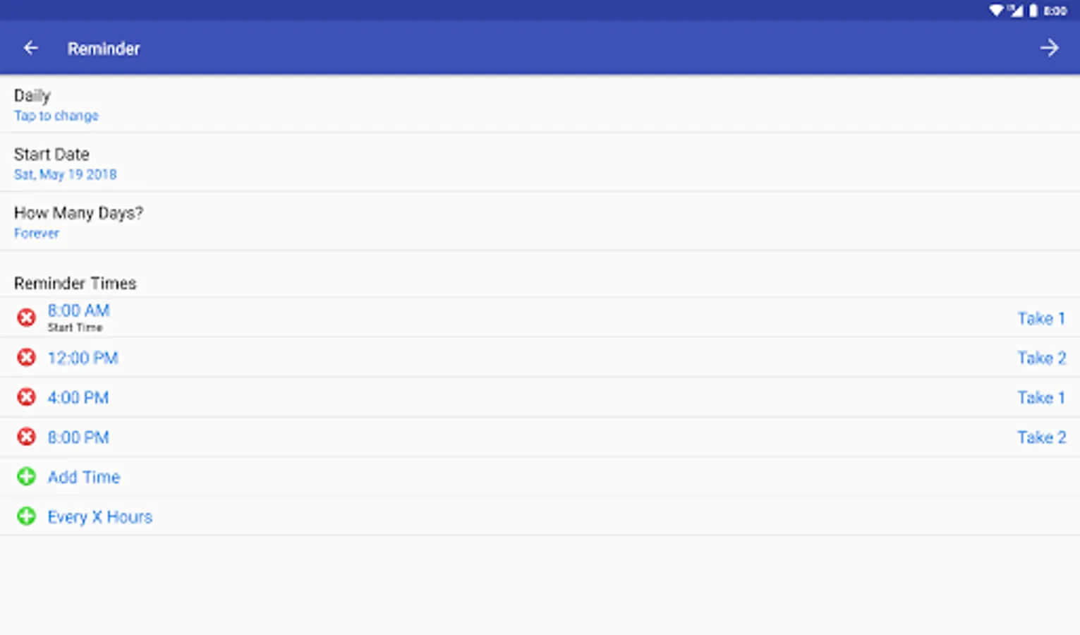 Pill Reminder - With this app you won't forget to take your medications at the right time. It's easy to use and reliable. It allows you to create any type of recurring reminders (every X hours, specific times, daily, weekly, days of the week, every X days, etc).