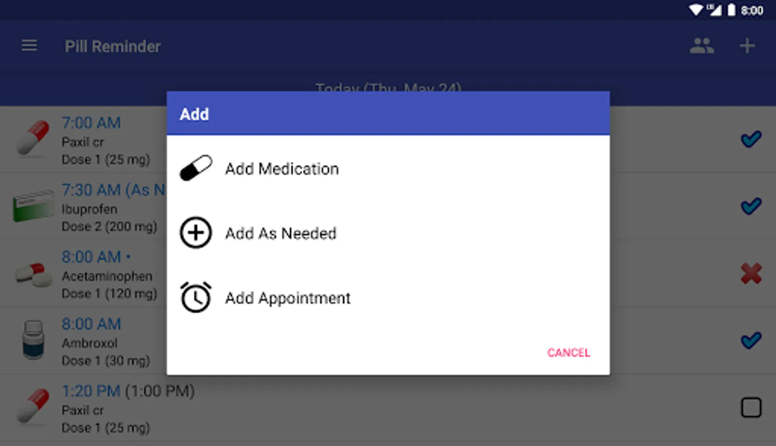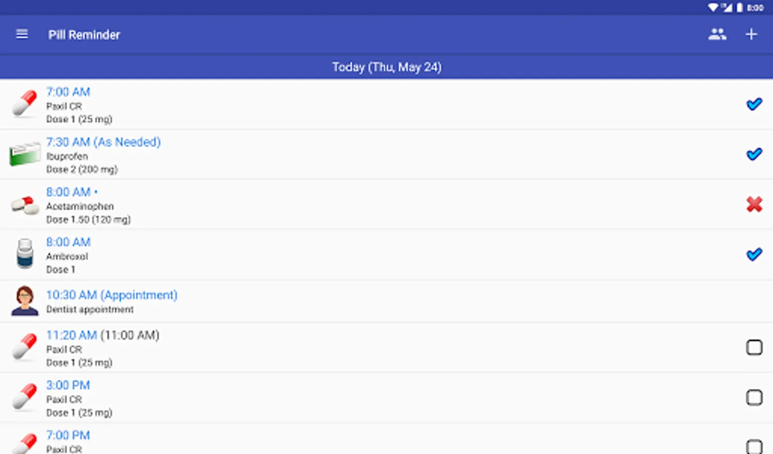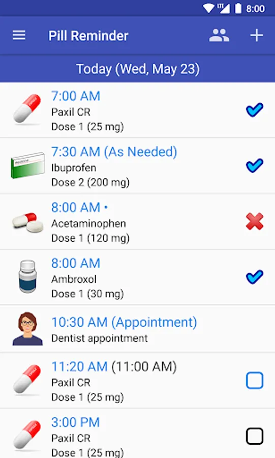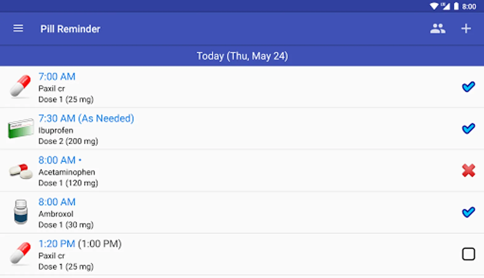 • Multiple user support. Add medications for yourself, family members, or others you care for