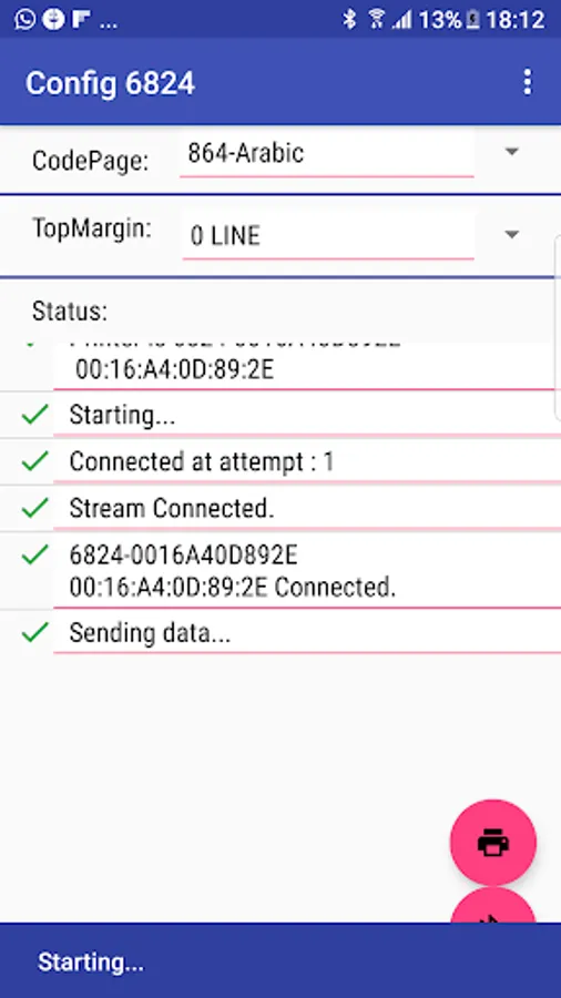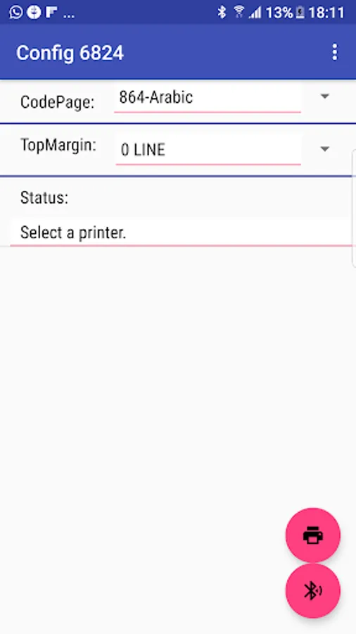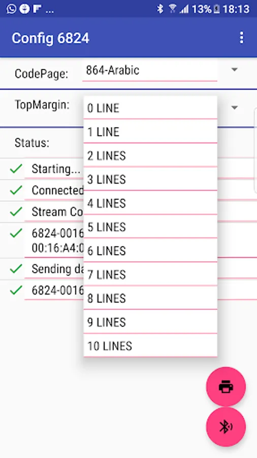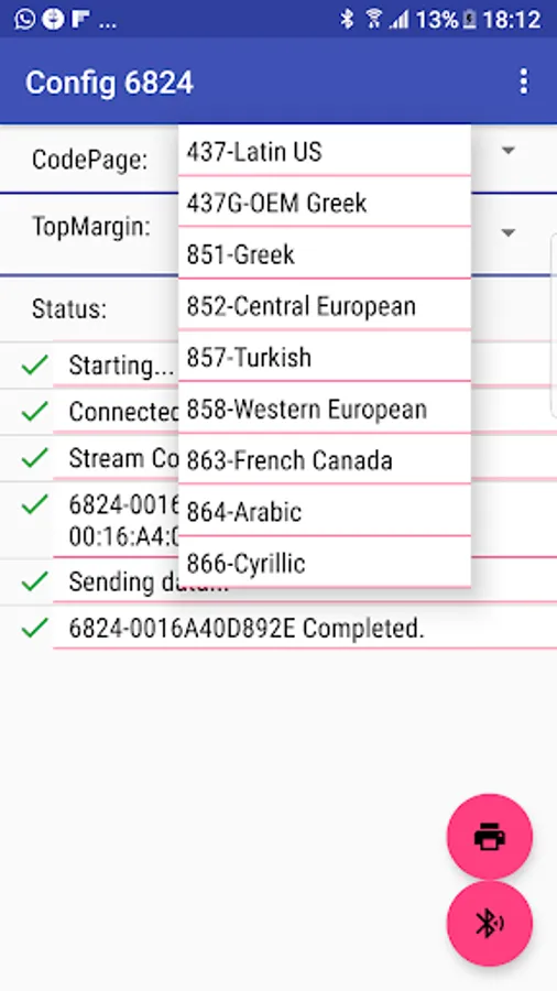 Application to select various code page /language and Top Margin up to 10 lines on Honeywell 6824 printer using Bluetooth.