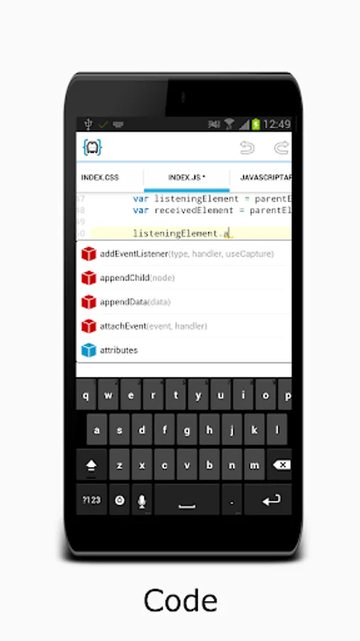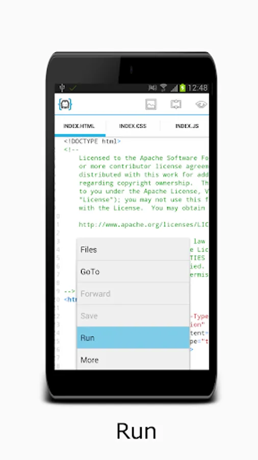 AIDE supports the full edit-compile-run cycle: write code with the feature rich editor offering advanced features like code completion, real-time error checking, refactoring and smart code navigation, and run your App with a single click.
