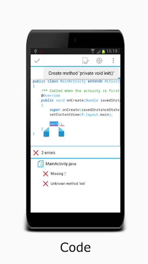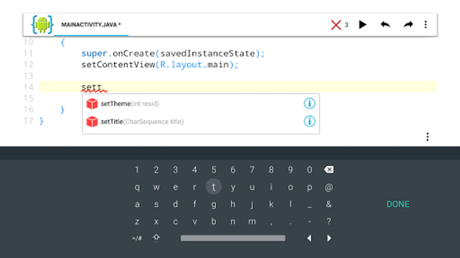 AIDE is an integrated development environment (IDE) for developing real Android apps directly on your Android device. Follow interactive coding lessons and step-by-step become an expert app developer. Visually design apps, write code with the feature rich editor with code completion, real-time error checking, refactoring and smart code navigation, run your app with a single click and use the Java debugger to find bugs.