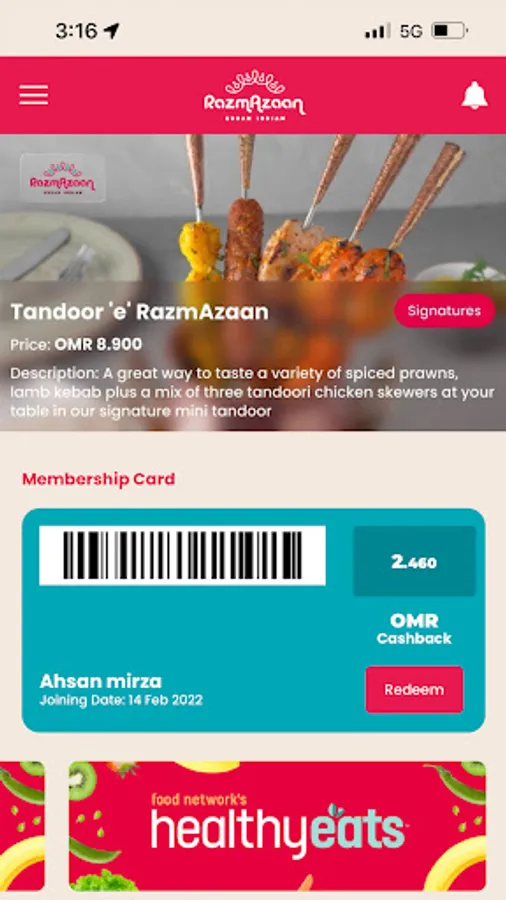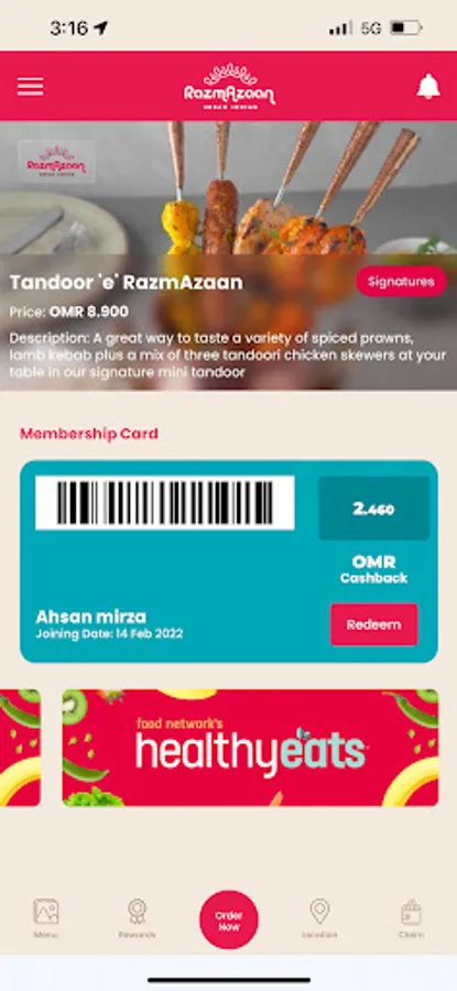 A customer loyalty application by RazmAzaan for its customers to earn RazmAzaan loyalty Cashback against their purchase across all RazmAzaan Outlets. Customers can earn and redeem Cashback using this application and also place Orders for delivery and takeaway by keeping a track of the latest offers.