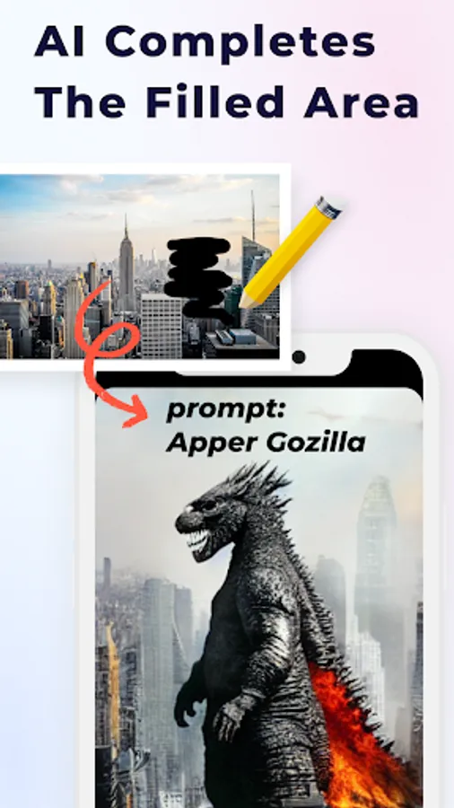 Just select the area and pick an object. Godzilla in New York, a car on the road or elven ears on your own head? The AI picture generator will make any idea real!