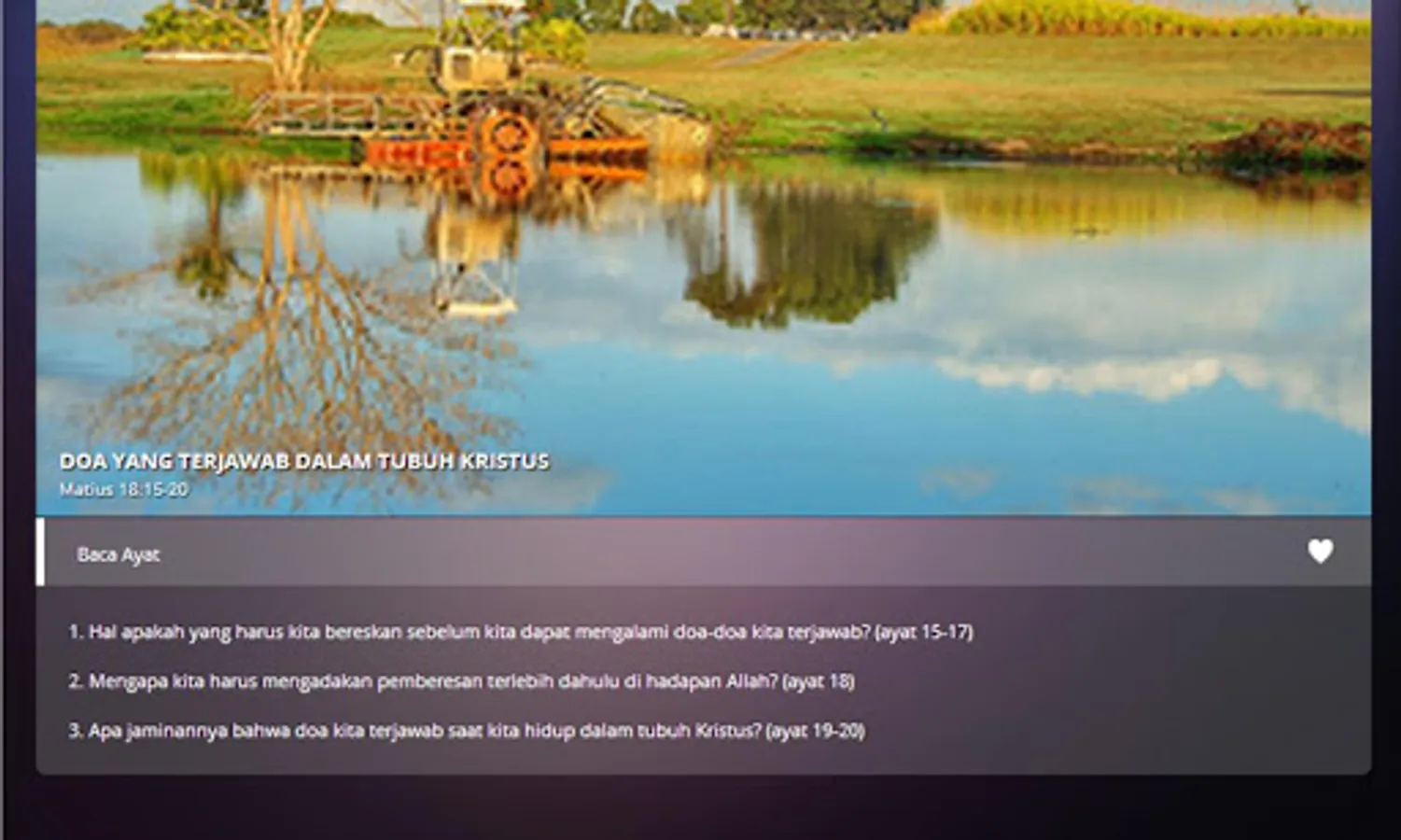 - Bahan saat teduh berdasarkan buku renungan saat teduh "BUILD" (terbitan "Abbalove Ministries")