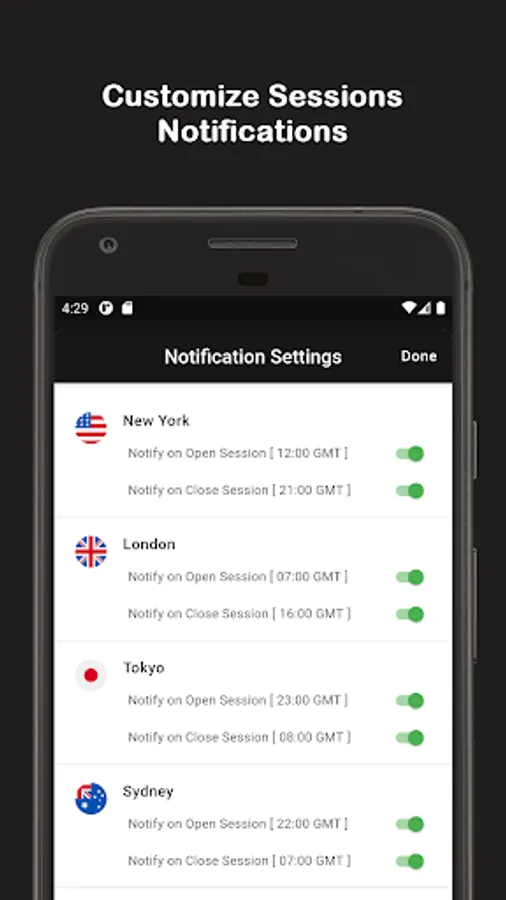 In addition, you can also choose to receive notifications/alerts when your favourite market open and closed.