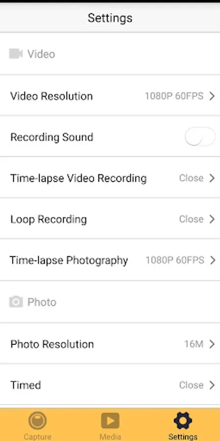 The App lets you change all of the camera's settings including photo quality, video and time-lapse modes and slow-mo.