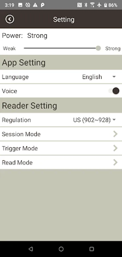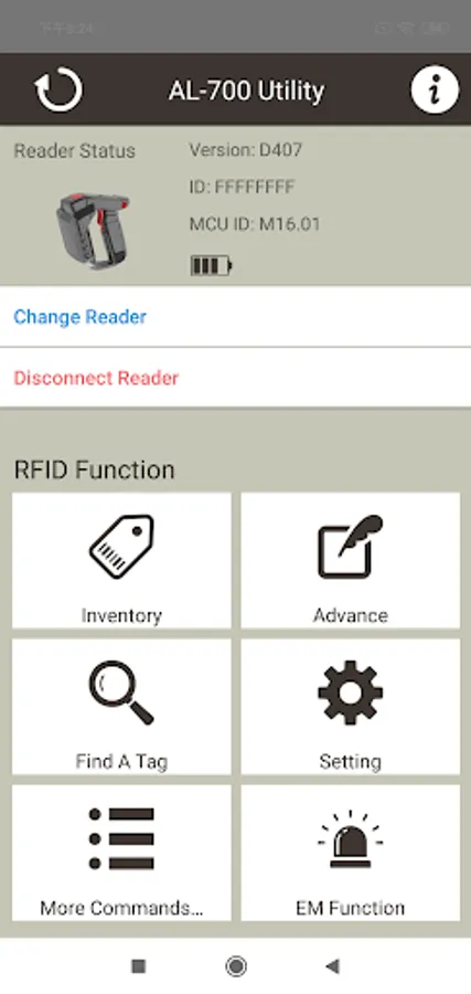 -Settings: Set tag reading block, reader power size, language setting, etc.