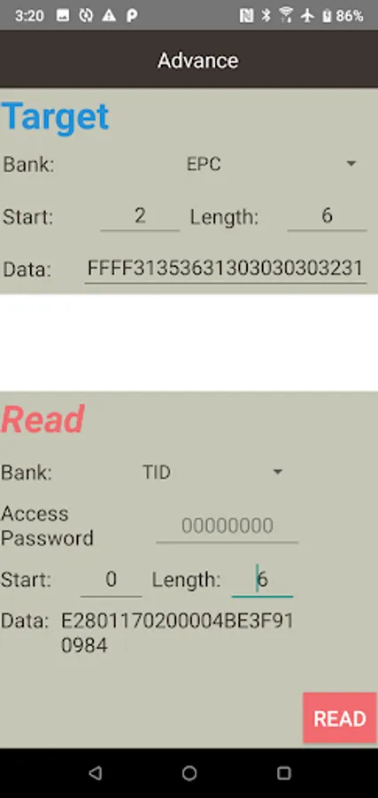 -Inventory: Display the read label information on the screen and provide file export.