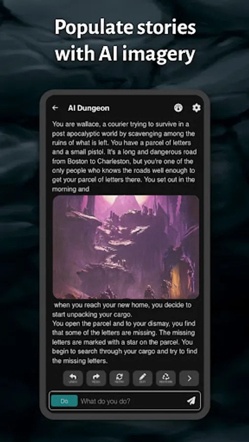 AI Dungeon is the first ever artificially intelligent open-ended text-based role playing game (rpg) adventure game. It uses cutting edge artificial intelligence technology to generate infinite content on the fly, giving you a completely unique and dynamic experience every time you play. AI Dungeon is also the first app to use the Stable Diffusion in-app for image generation (similar to other AI image generators like Midjourney and Dall-e 2).
