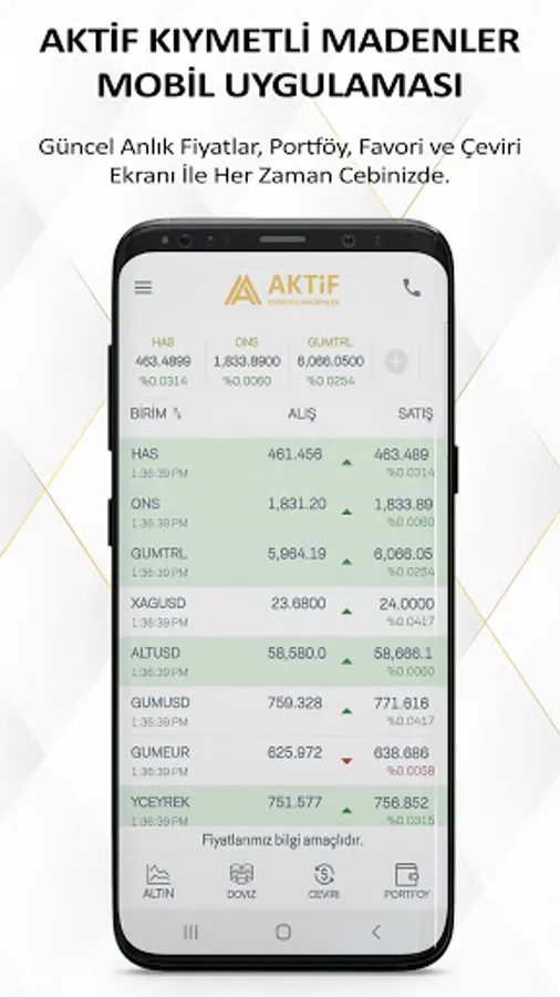 Aifa Global Informatics Services is a mobile application where you can see gold, currency, parity and jewelry products with instant prices offered by L.T.D, offer portfolio opportunity, create your own parity with Translation screen and monitor prices with instant graphics.