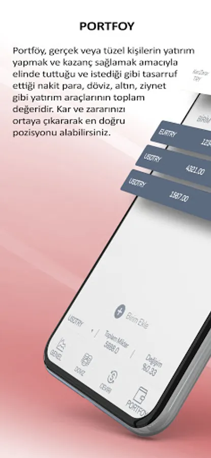 Portfolio is the total value of investment instruments such as cash, foreign currency, gold, jewelery that real or legal persons hold in order to invest and earn profits and save as they wish. You can take the most accurate position by revealing your profit and loss.
