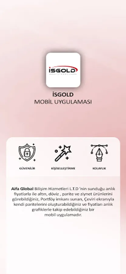 It is a mobile application where you can see gold, foreign currency, parity and jewelery products with instant prices offered by Aifa Global Bilişim Hizmetleri L.T.D.