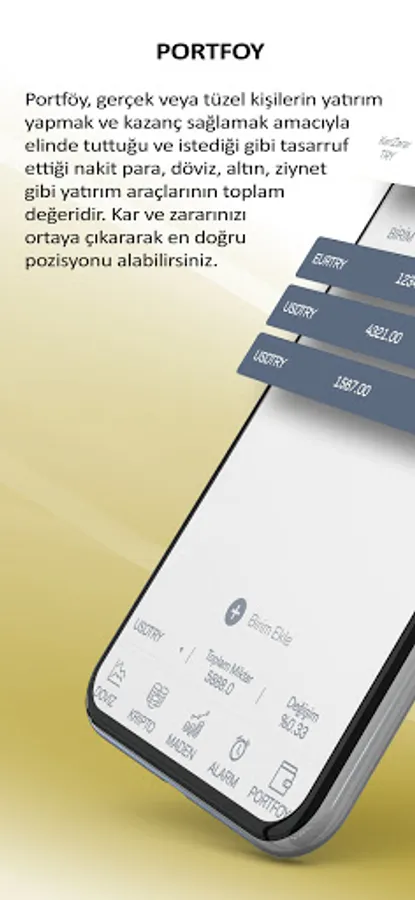 Portfolio is the total value of investment instruments such as cash, foreign exchange, gold, jewelery that real or legal persons hold for investment and profit and save as they wish. You can take the most accurate position by revealing your profit and loss.