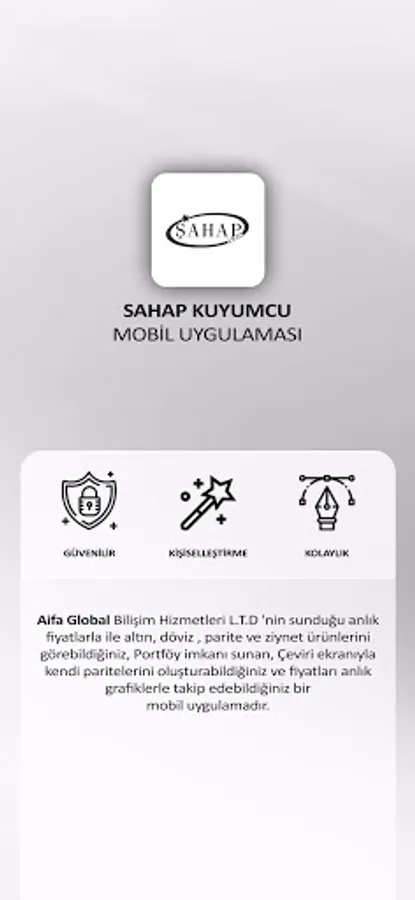 Aifa Global Informatics Services is a mobile application where you can see gold, currency, parity and jewelry products with instant prices offered by L.T.D, offer portfolio opportunity, create your own parity with Translation screen and monitor prices with instant graphics.