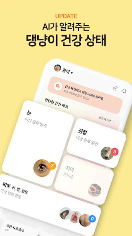 • If you take a picture of your eyes, skin, and gait with the camera, artificial intelligence analyzes it and informs you of abnormal signs in the area.
