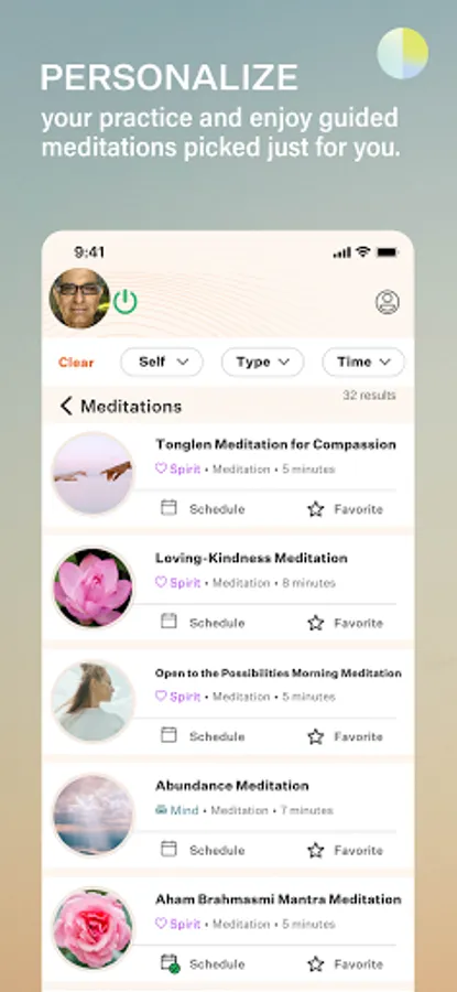 • Access: personalized programs that draw on over 50 different meditations and practices developed by Deepak.