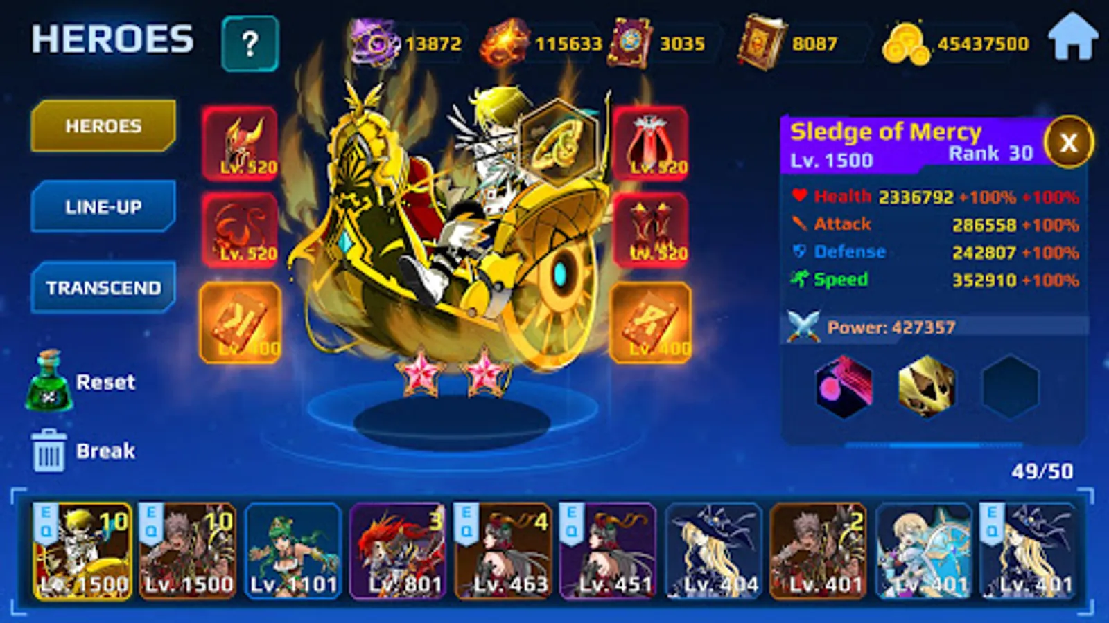 Create your own team from 70+ heroes, each with 3 transcend forms.