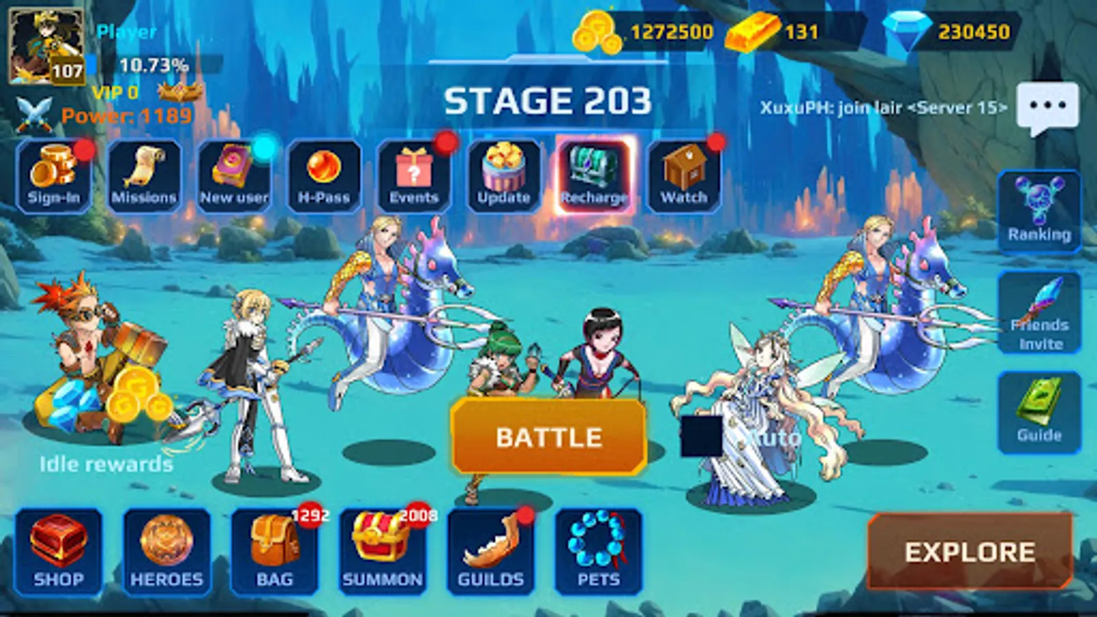 Build your team, upgrade your heroes, and fight against the toughest opponents and bosses to get the number 1 spot.