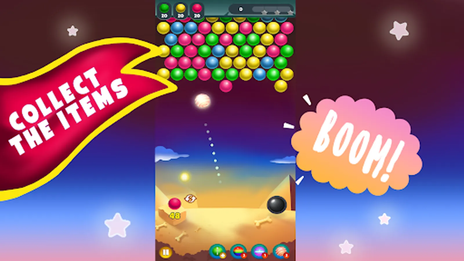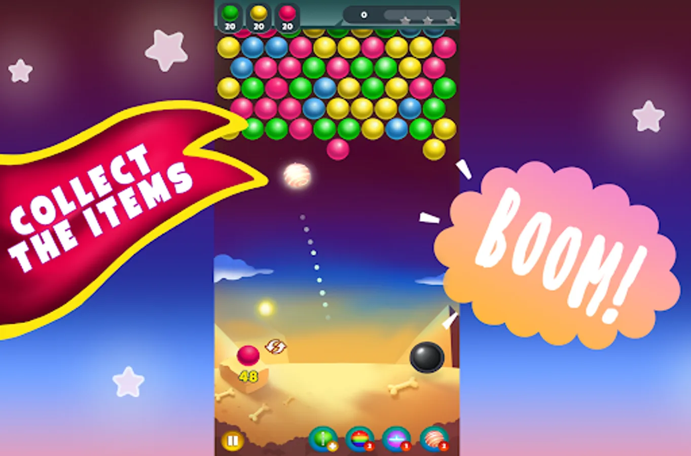★ Classic Bubble Blast & Item Collecting Puzzle Game with multiple levels and challenging obstacles.