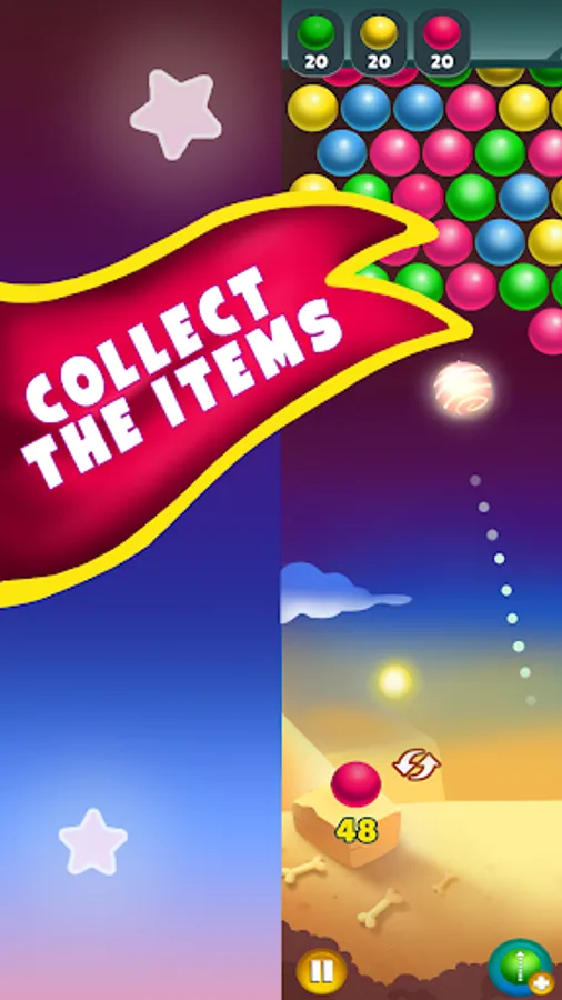 Work your way through increasingly challenging bubble shooting puzzles. Collect the items, pop and blast bubbles to victory!