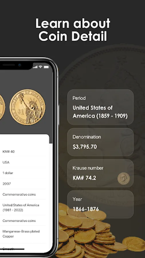 iCoin is sure to be your best partner in the coin collecting process. Using iCoin to take pictures to identify coins and view relevant information such as issuer, material and value, allows you to better know about your coins and also make informed numismatic buying, selling and trading decisions.