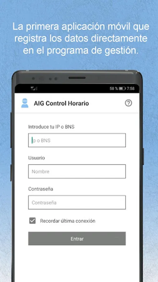 Your workers can sign up through your mobile phone with the AIG Control Time app and register your entry in a few clicks. The best solution for hourly control of those who perform their work from home, on the street or on the road.
