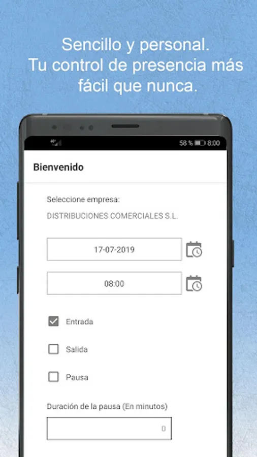 - Easy to use. With your username and password the worker will mark if it is an entry, exit or pause.