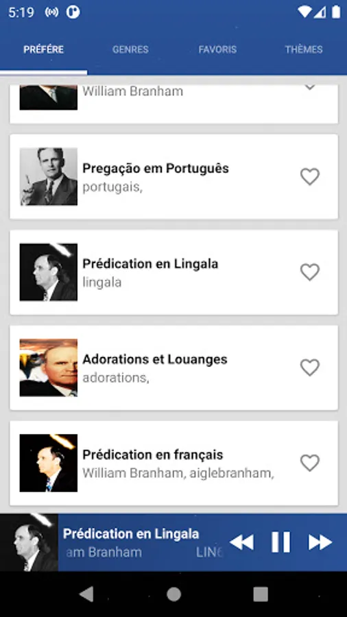 You can listen to the sermons of the prophet William Branham in your own languages, (English, French, Spanish, Portuguese, Lingala, Tshiluba, Swahili, Afrikaans, Deutsch, Estonian, Nederlands, Northern Sotho, Vietnamese, Italiano, Creole, Russian, Kinyarwanda, Albanian, Arabic, Bengali, Italiano, ...)