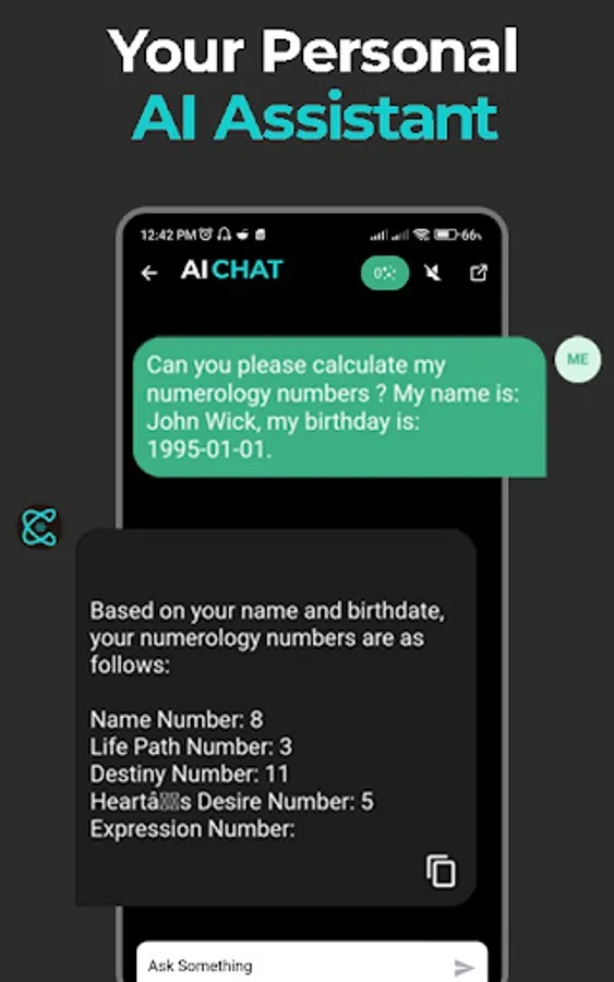 Unlock Instant Knowledge with AI Chatbot Assistant: Get prompt answers to any query, from history to science, trivia to pop culture. It can understand and answer many types of questions because the AI system has been trained through a machine learning process with a large amount of data. This also makes it a perfect personal AI assistant to understand and respond to a variety of inputs in the most natural and human-like way.