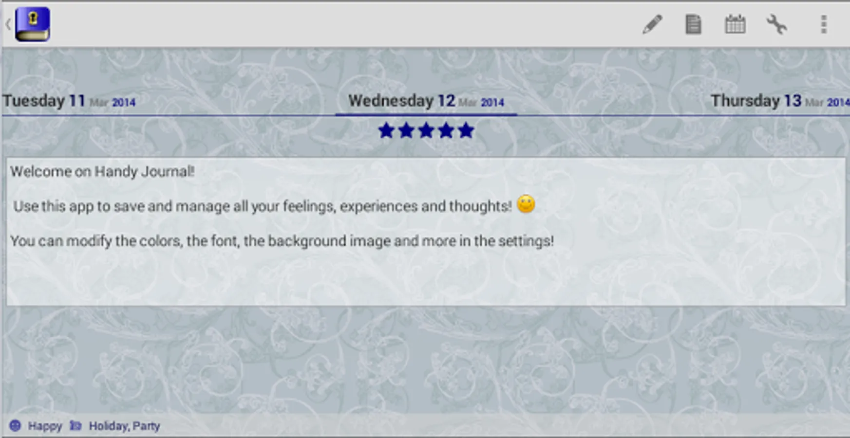 Handy Journal is a private journal with a secure lock password that allows you to protect your daily thoughts. All your secrets, your dreams and your memories can be organized and managed in this free app. You can fully customize the app: change the colors, the wallpapers and the font!
