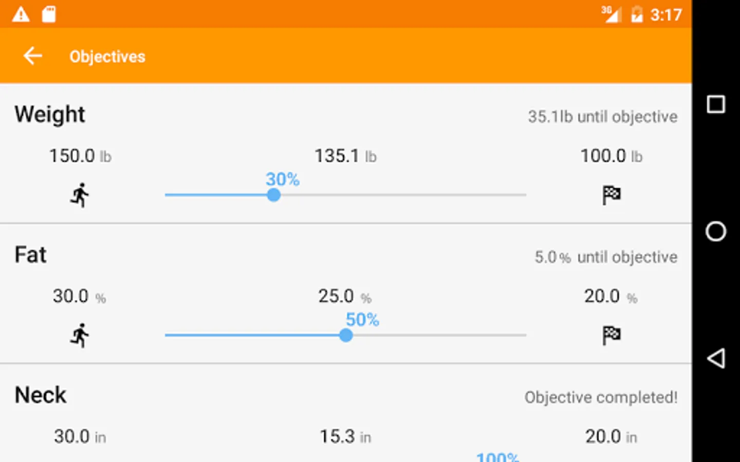 NOTE: All progress variations (weight gain or weight loss) are calculated automatically