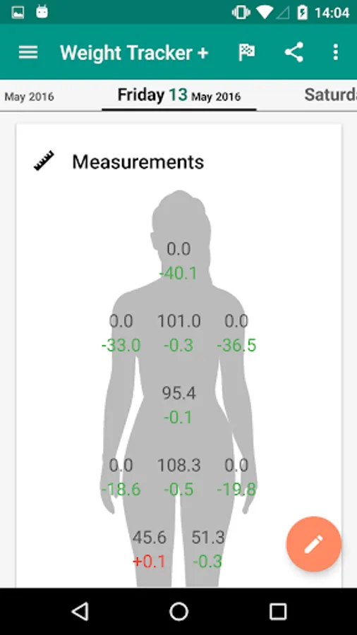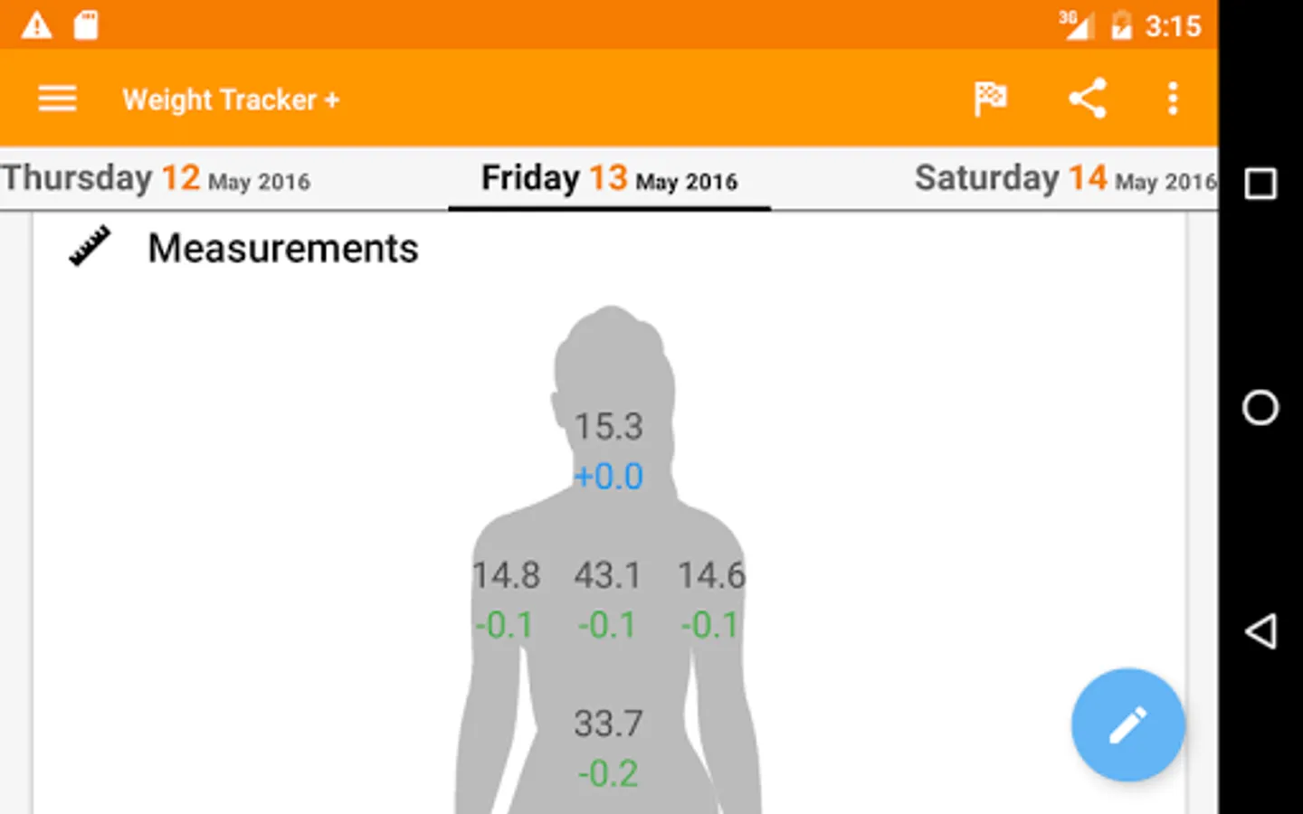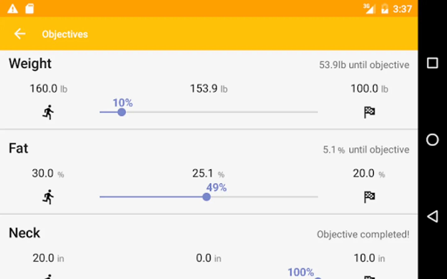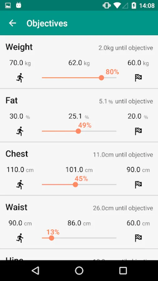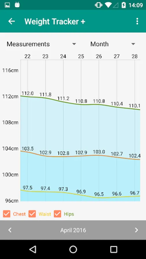 A dedicated screen is available for every measurement and every weight to allow you to track your progress and reach your objective (weight gain or weight loss).