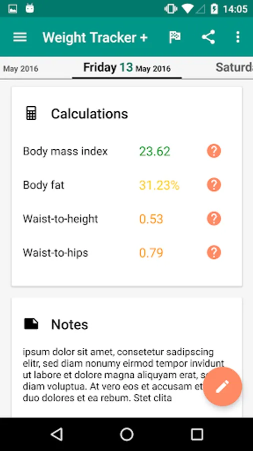 Weight Tracker + also generates automatically the following formulas according to your age, gender, height and body measurements: