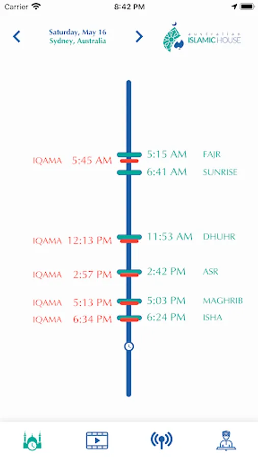 * Azan and Iqama times at AIH masjid