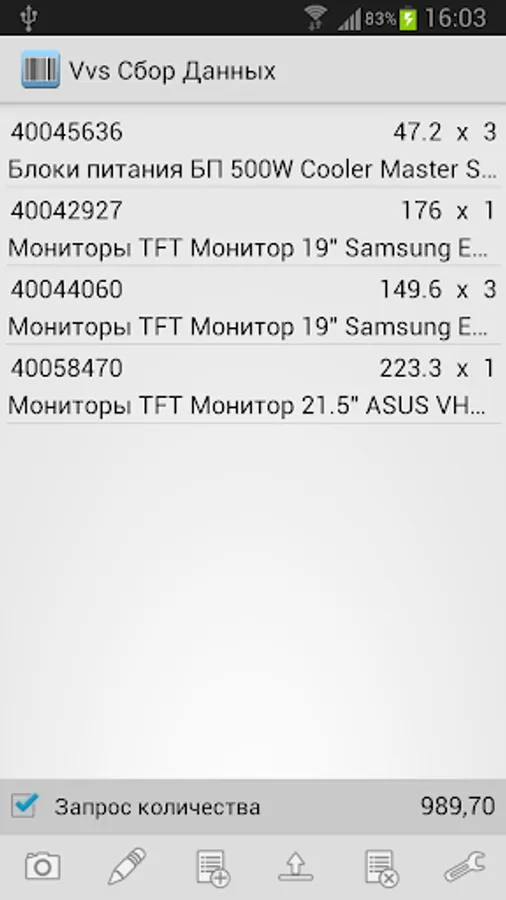 C program Vvs "Data Collection" can read bar codes of goods from built-in camera or barcode scanner. It should be noted that the use of large volumes of barcode scanner is preferable.