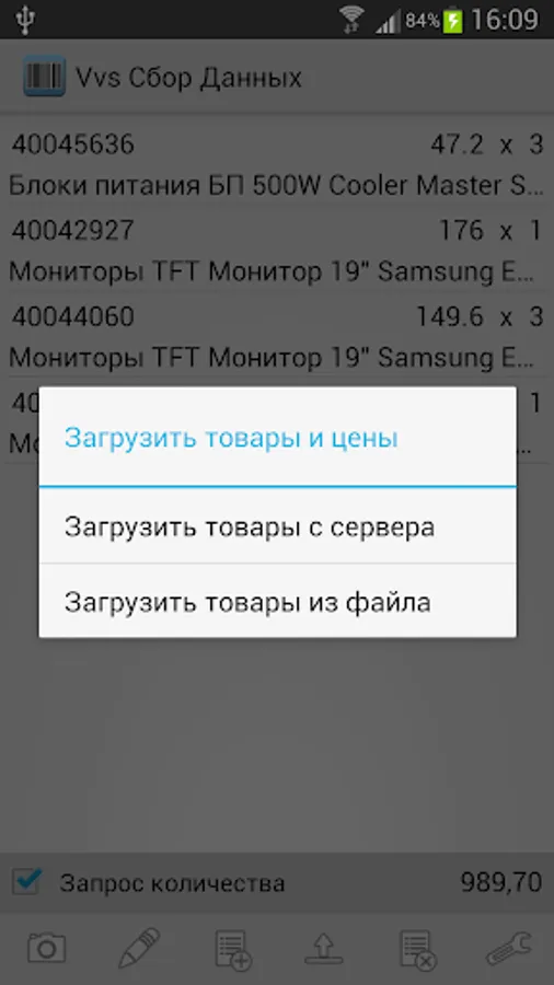 Product names, their barcodes, prices and balances can be loaded into Vvs "Data acquisition" of the accounting program.