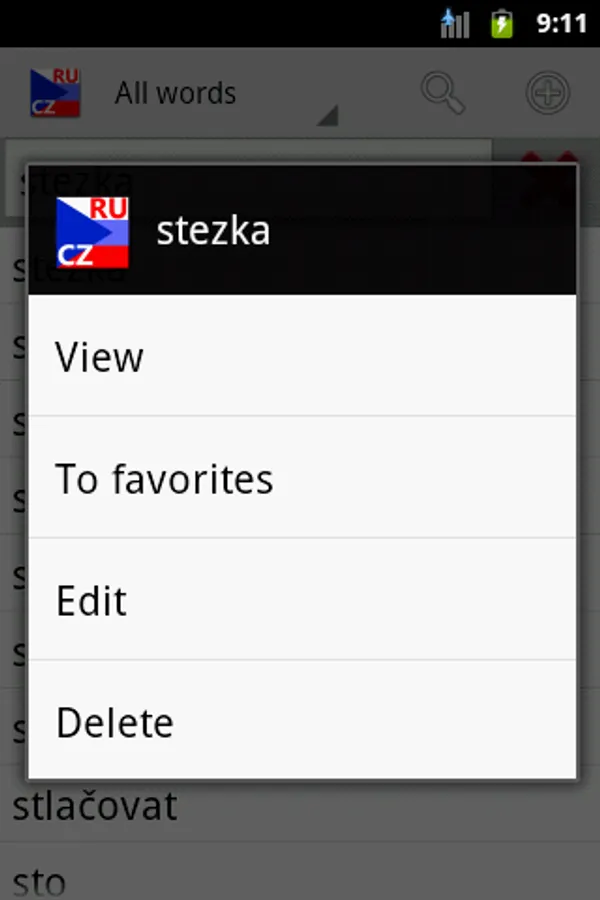 Vvs Russian - Czech and Czech - Russian editable Dictionary contains 43000 words.