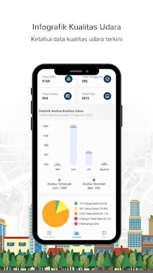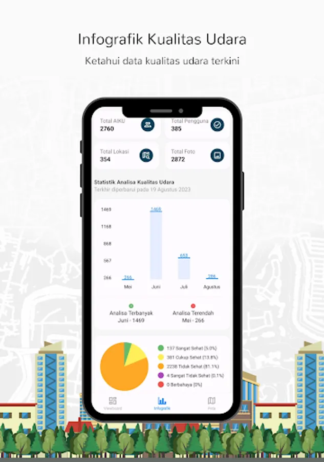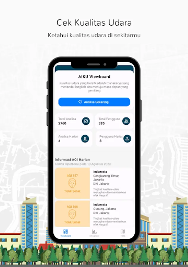 AIKU provides up-to-date information on air quality analysis results. Get the latest data on AIKU analysis visually through easy-to-understand infographics. Through an informative display, you can get complete information about the air quality analysis provided by AIKU.