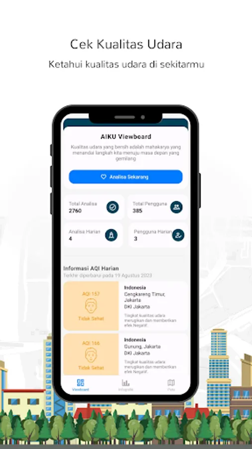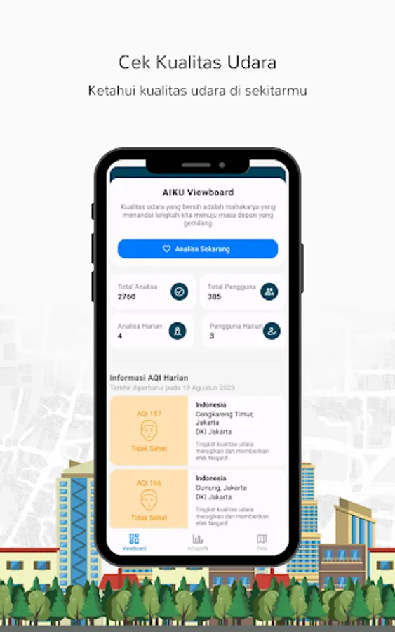 Check the air quality around you quickly and easily through the AIKU application. Just one touch to get the latest information about the level of air pollution in your area.