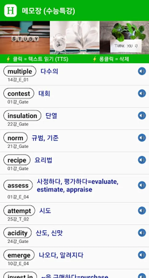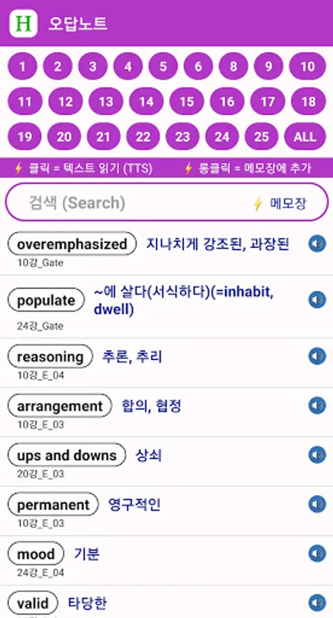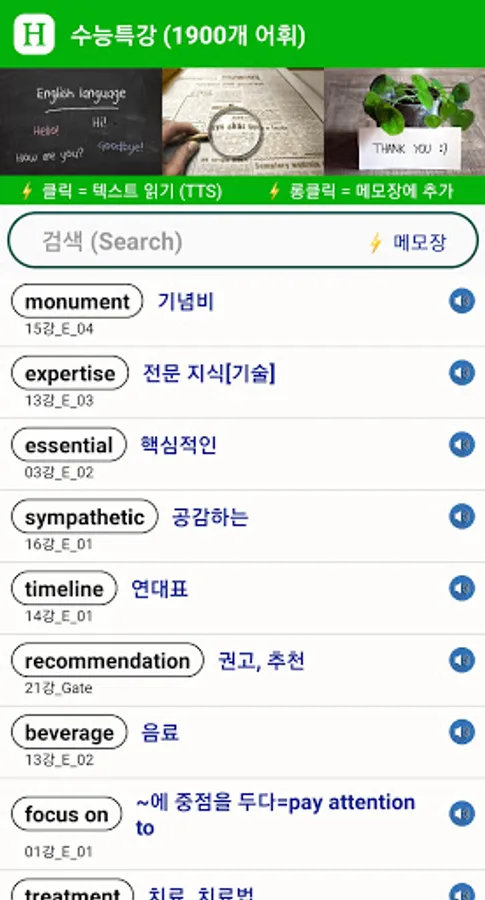 ■ Each text can be heard in English (Korean) pronunciation with one click.