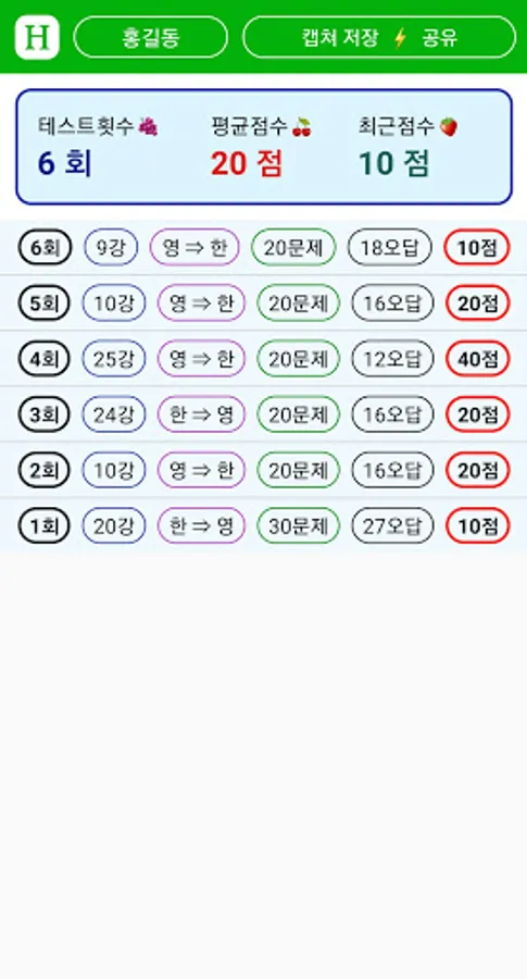 ■ Vocabulary test function (question, scoring, incorrect answer storage, recent score, average score, capture), you can easily see the vocabulary test anytime, anywhere.