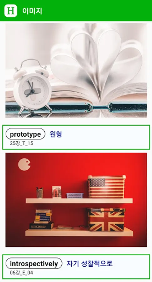 ■ Classified by vocabulary for each unit, and you can see a quick search function and background images related to English.