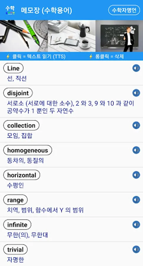 ■ Math terminology English expression app required for those who learn or prepare for math terms (English expression).