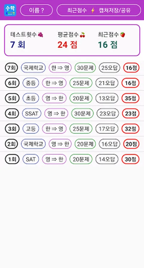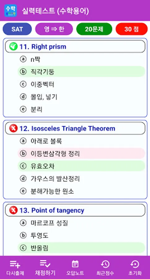 ■ Math terminology (English expression) There is a skill test function (question, scoring, storing incorrect answers, recent score, average score, capture), so you can easily see your skill test anytime, anywhere.