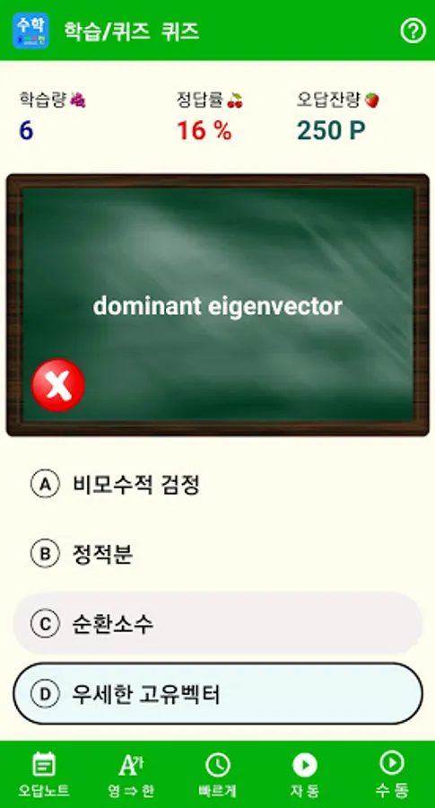 ■ When selecting an incorrect answer in quiz mode, it is automatically saved as an incorrect answer note.
