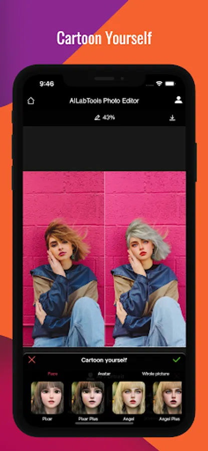 PhotoPaint- Convert images into cartoon, pencil, coloured pencil, or gothic oil painting, coloured sugar cube oil painting, shouting oil painting, Kanagawa Surf Lane oil painting, whimsical oil painting, lavender oil painting, etc. in a total of 9 styles by using AI algorithms.