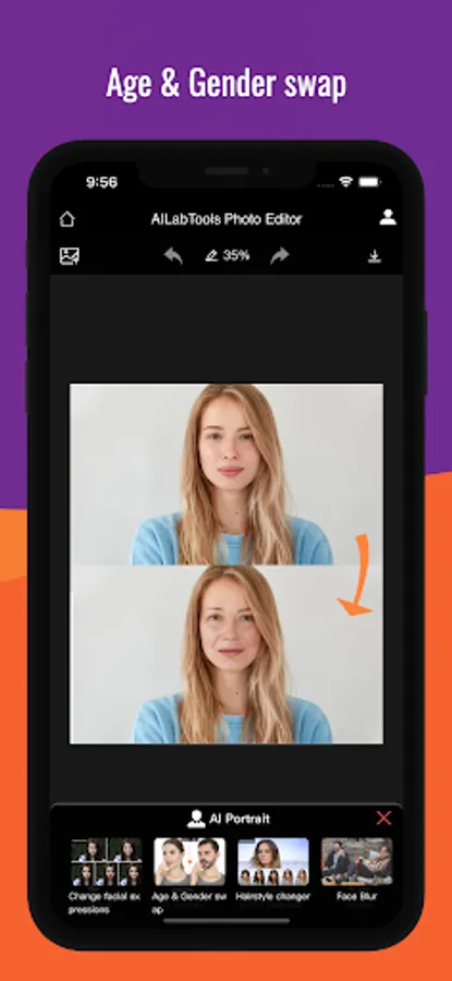 Age & Gender swap - Through AI algorithms, face attribute features can be edited to achieve special effects such as gender swapping and age change, generating a variety of special effects photos for users, which can be applied to fun social networking.