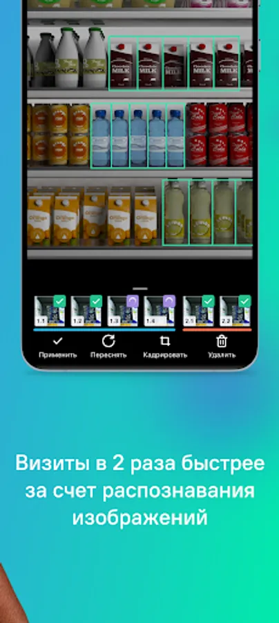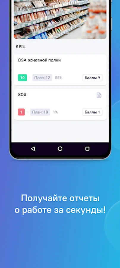 The application allows you to reduce the visit time in offline stores by 20-40% due to the absence of the need for manual calculation of KPI